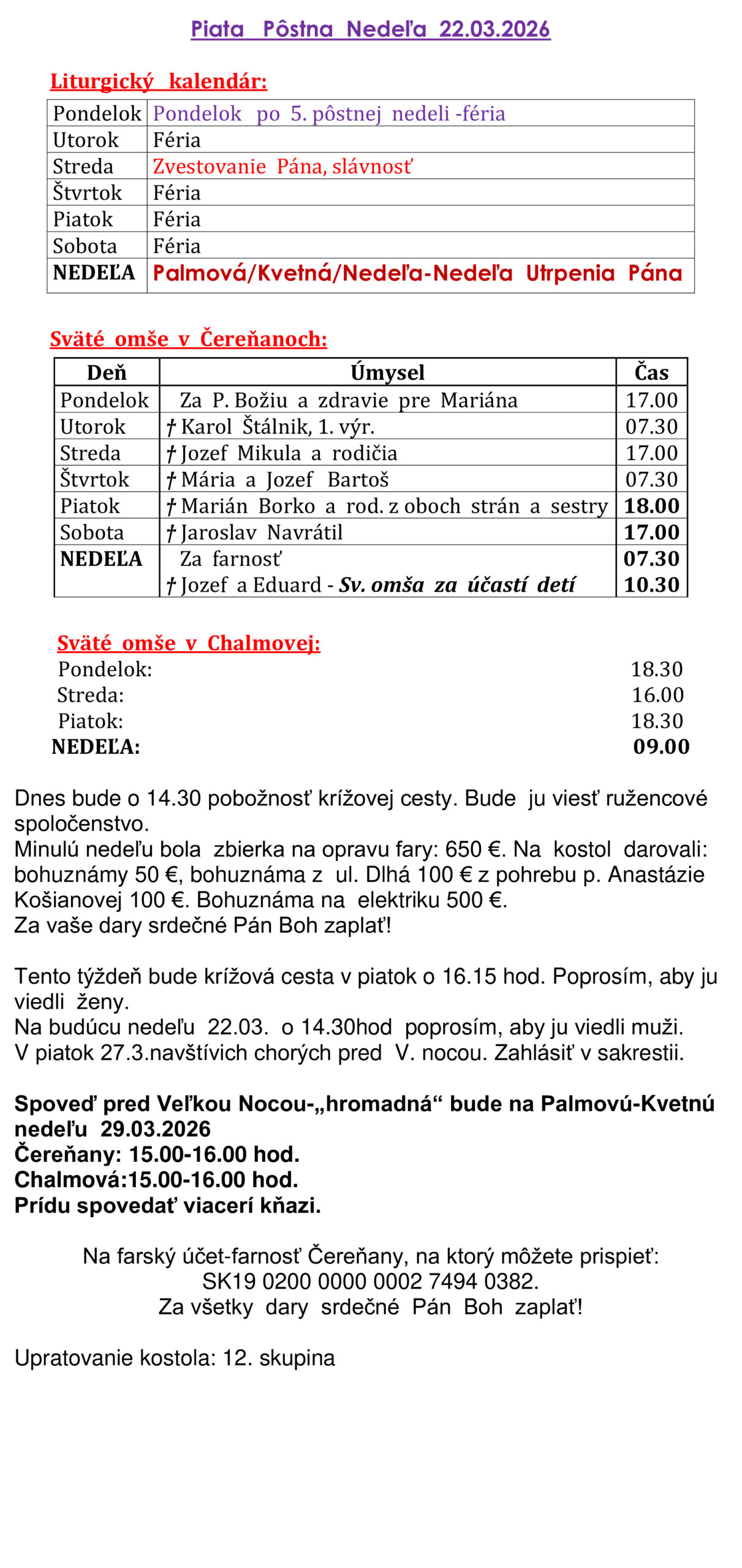 Farské oznamy 23. 3. 2026 – 29. 3. 2026