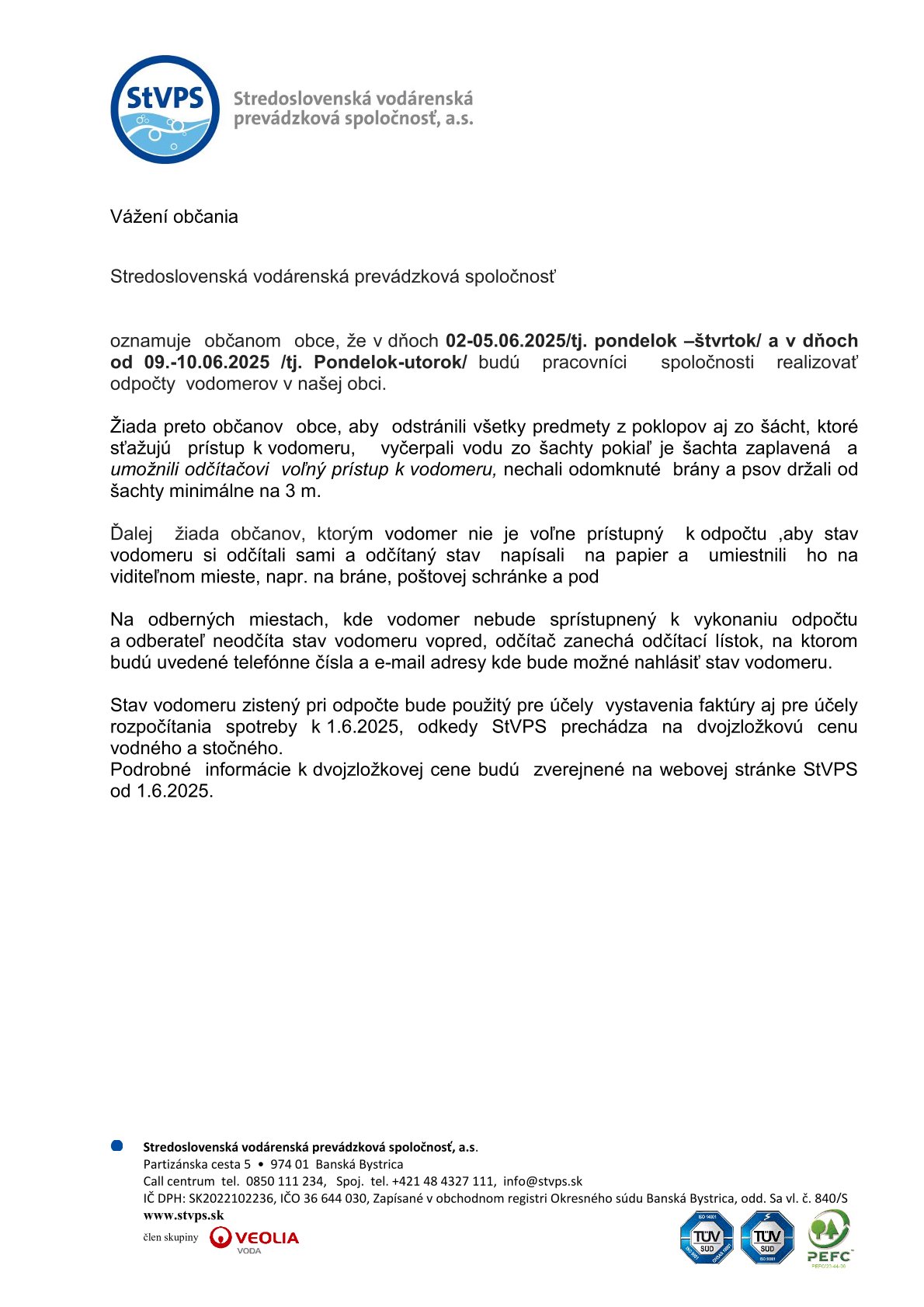 Hlásenie obecného rozhlasu – Odpočet vodomerov
