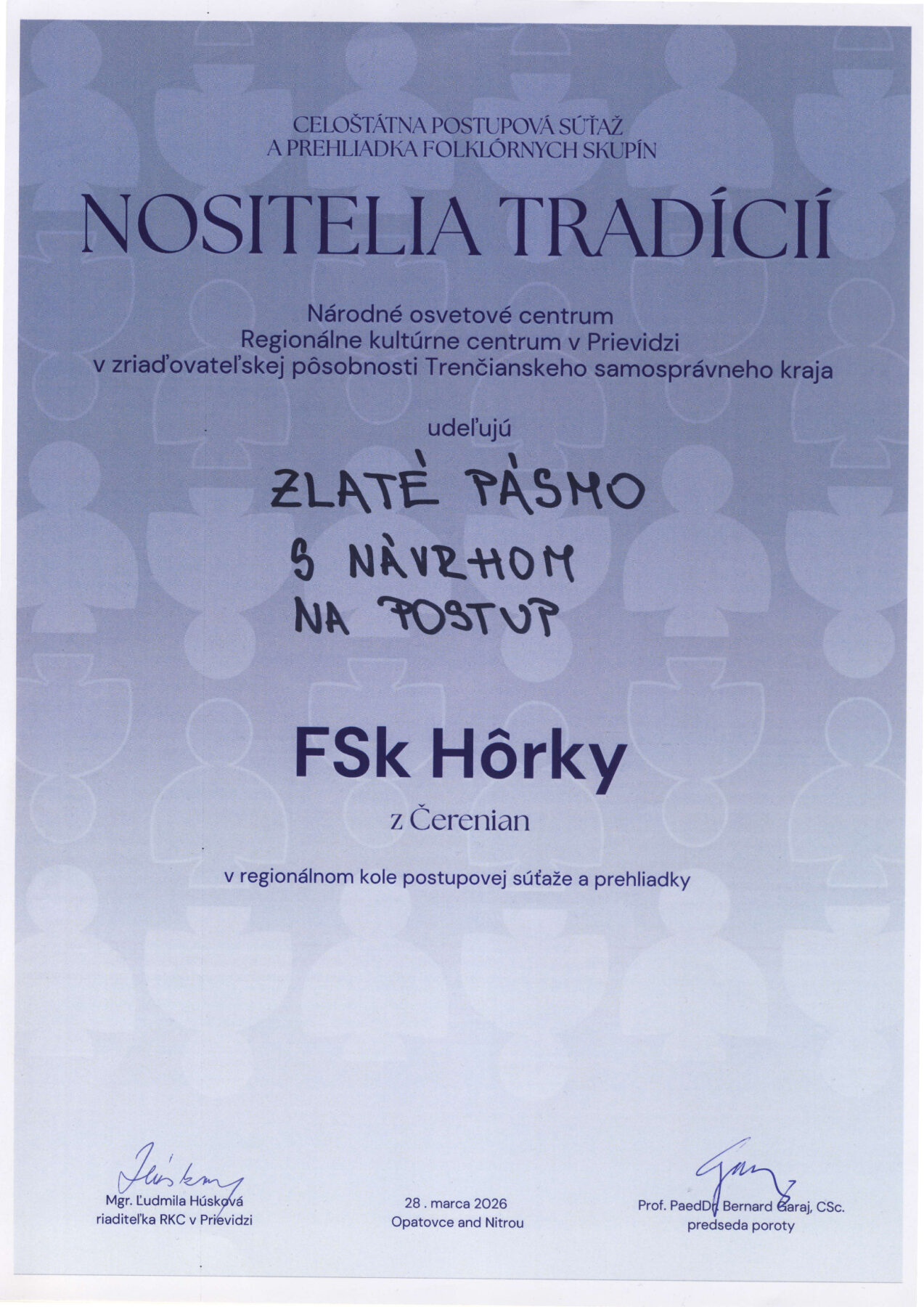 28. 3. 2026 sa uskutočnilo regionálne kolo celoštátnej postupovej prehliadky folklórnych skupín – NOSITELIA TRADÍCIÍ.